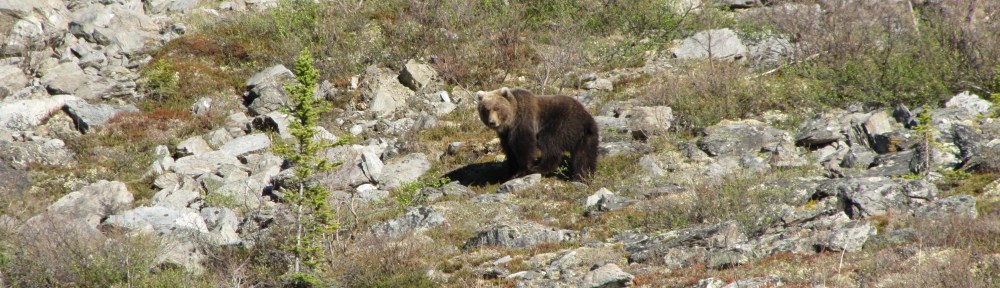 Our second visit to Denali was part of a longer camping trip with friends. We drove our truck camper and our friends rented an RV. They didn’t get to see much of the wild life that time, except for this couple on the road: